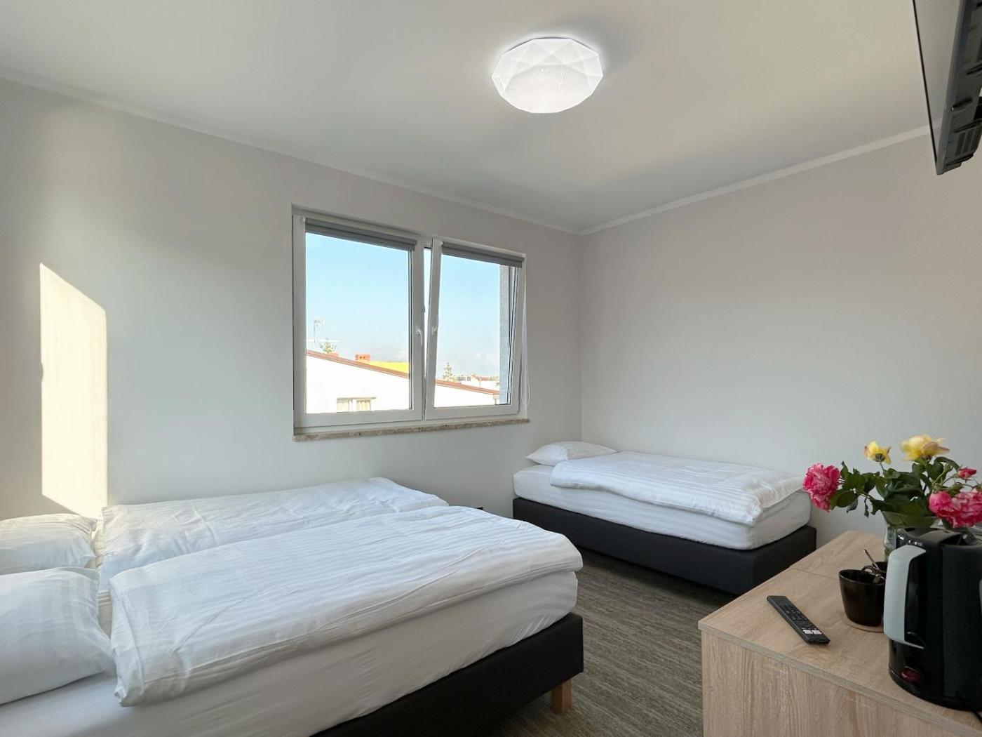 Pokój trzyosobowy z widokiem. This air-conditioned triple room has a private bathroom, soundproof walls, a tea and coffee maker as well as a terrace. The unit has 3 beds. Pokój Trzyosobowy - 3 osobowy. Powierzchnia pokoju ok.: 17 mkw. ;