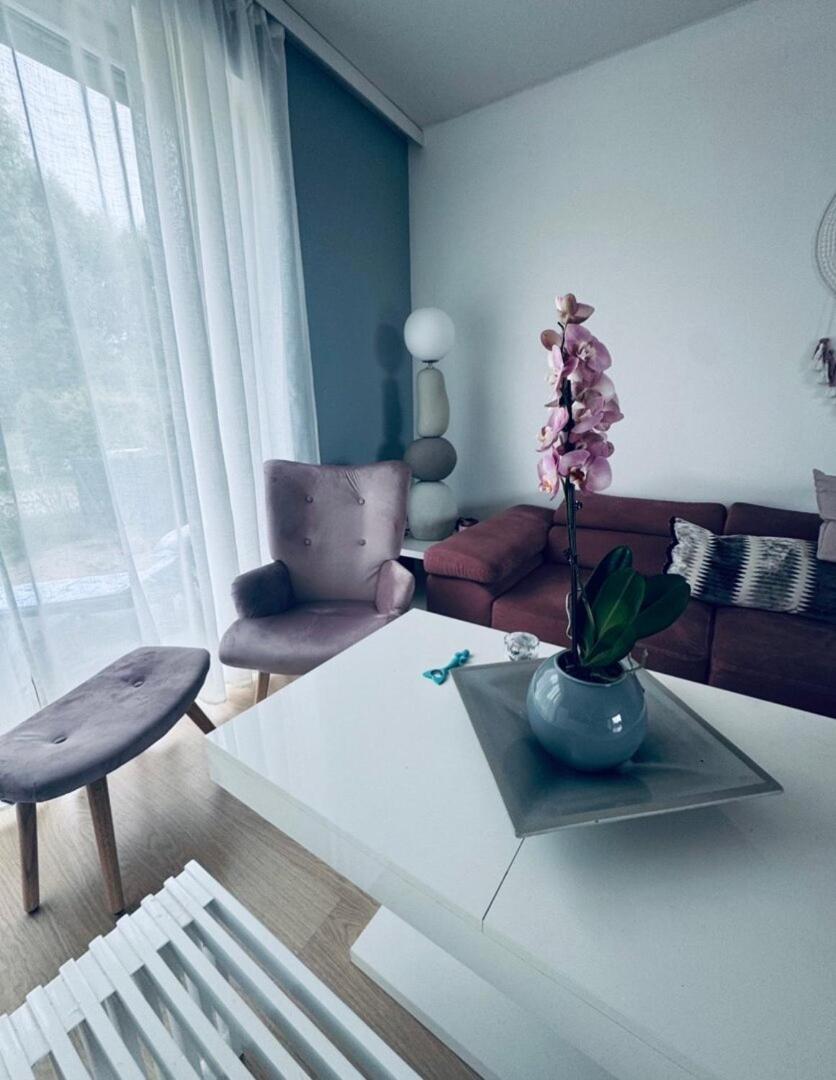 W apartamencie znajduje się telewizor. Wyposażenie aneksu kuchennego obejmuje lodówkę, piekarnik, mikrofalówkę, a także ekspres do kawy i czajnik.