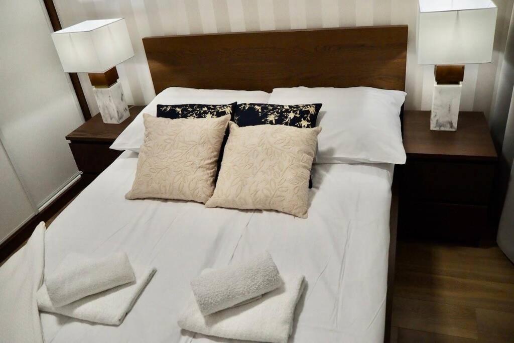 Oferta apartamentu obejmuje sypialnię (1), salon, kuchnię z pełnym wyposażeniem, w tym lodówką i ekspresem do kawy, a także łazienkę (1) z prysznicem oraz suszarką do włosów. W apartamencie zapewniono ręczniki i pościel.