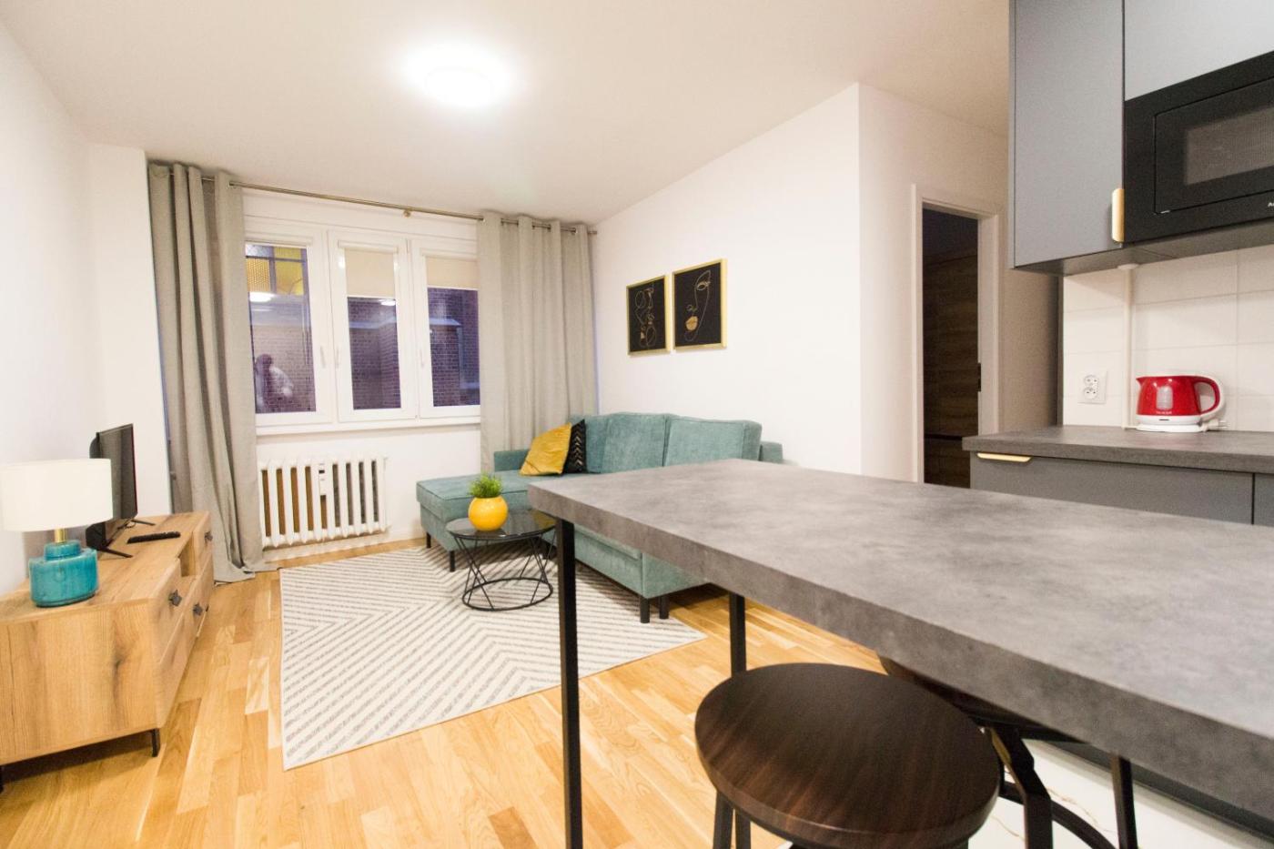 Apartament z 1 sypialnią. Meals can be prepared in the kitchenette, which comes with a stovetop, a refrigerator, kitchenware and a microwave. The apartment offers a washing machine, a private entrance, a seating area, a dining area and a flat-screen TV. The unit offers 2 beds. Apartament - 4 osobowy. Powierzchnia pokoju ok.: 30 mkw.